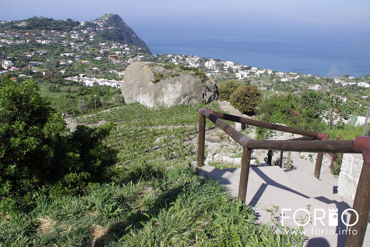In altre parole non cresce quasi più nulla, ad eccezione di qualche robusta agave e, soprattutto, del “Papiro delle Fumarole” (nome scientifico “Cyperus Polystachyus”) pianta rara che per la sua vegetazione ha appunto bisogno delle particolari condizioni climatiche del terreno “offerte” dalle fumarole. L’altro “ingrediente” di questa bella passeggiata nella natura di Forio è il panorama tutt’attorno. Panorama che per secoli quasi ha rappresentato l’unica forma di consolazione per le maestranze locali impegnate a strappare suolo coltivabile a una natura impervia ancorché generosa di frutti.